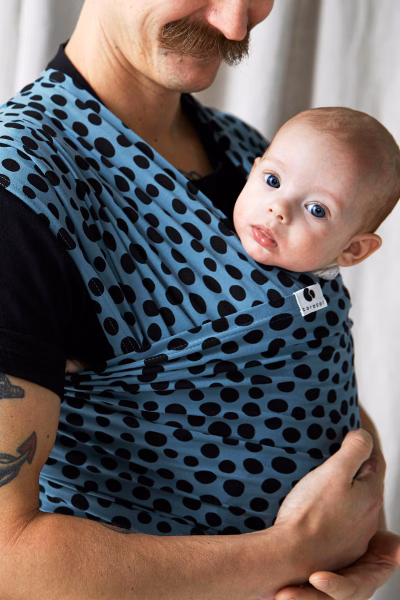 What sets the Coracor wrap apart is the stunning Organic Cotton fabric, available in a range of the most beautiful prints. Formulated to offer the perfect amount of stretch - so that it is simultaneously stretchy enough that it is as easy as pie to tie and pop baby in and out of, while still remaining firm and strong enough to support a growing baby while you walk around. Whilst still looking absolutely fabulous! When it comes to stretchy wraps normally you can choose pretty but the stretch isn't as good and consequently the wrap is harder to use, or you can choose a wrap that performs well but is only available in a solid colour.... the Coracor breaks the mould and finally gives you that "why choose" option to have both - ease of use and style!